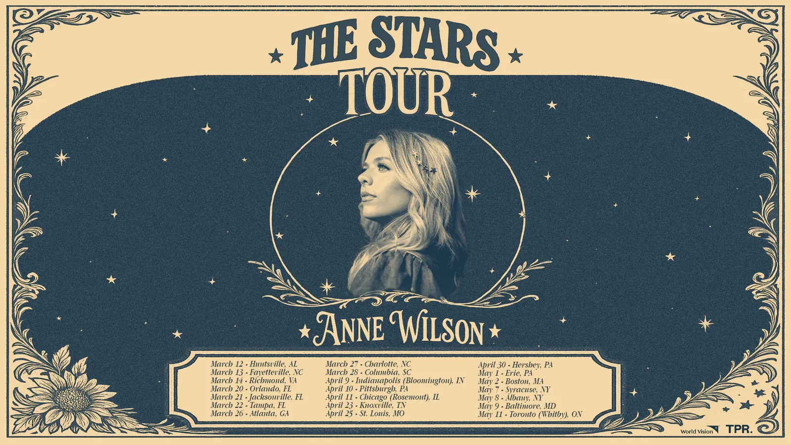 Join GRAMMY-nominated singer-songwriter Anne Wilson for the second leg of The STARS Tour, this Spring in Whitby/Toronto. Come get a first look at new music from her recently released album STARS, alongside fan favourites like “Rain in the Rearview,” “Strong,” “Hey Girl,” and her multi-week No. 1 smash “My Jesus.”